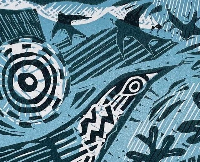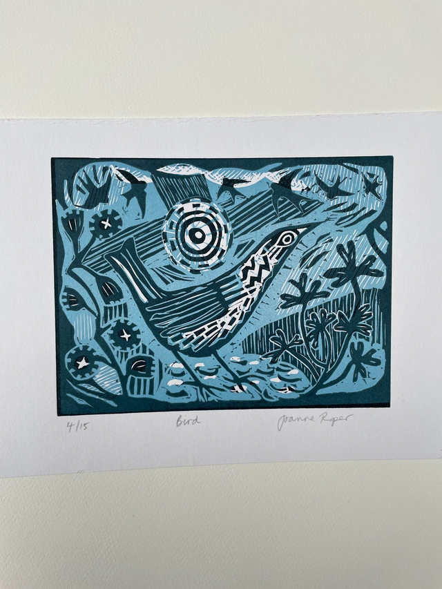 Linocut prints are handmade and subtle variations in colour and detail will occur, making each print unique. Photos are for guidance only.