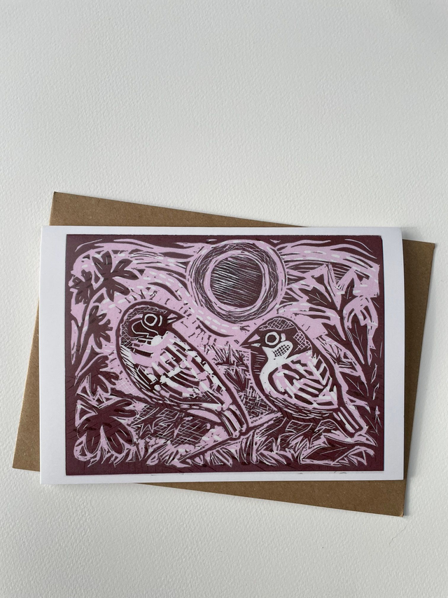 Rosy sparrows, greetings card